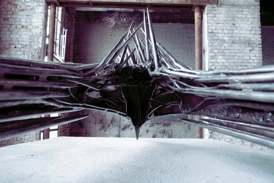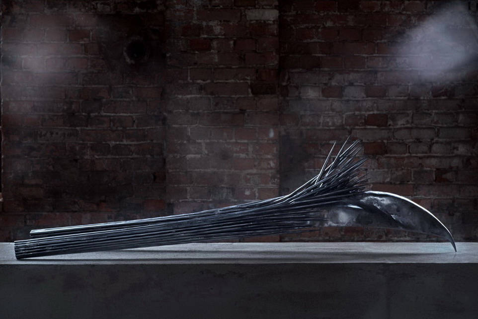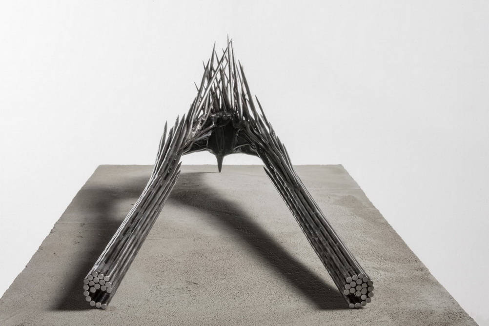 2016, steel, armature, gun oil.130/40/35 cm., in private collection.