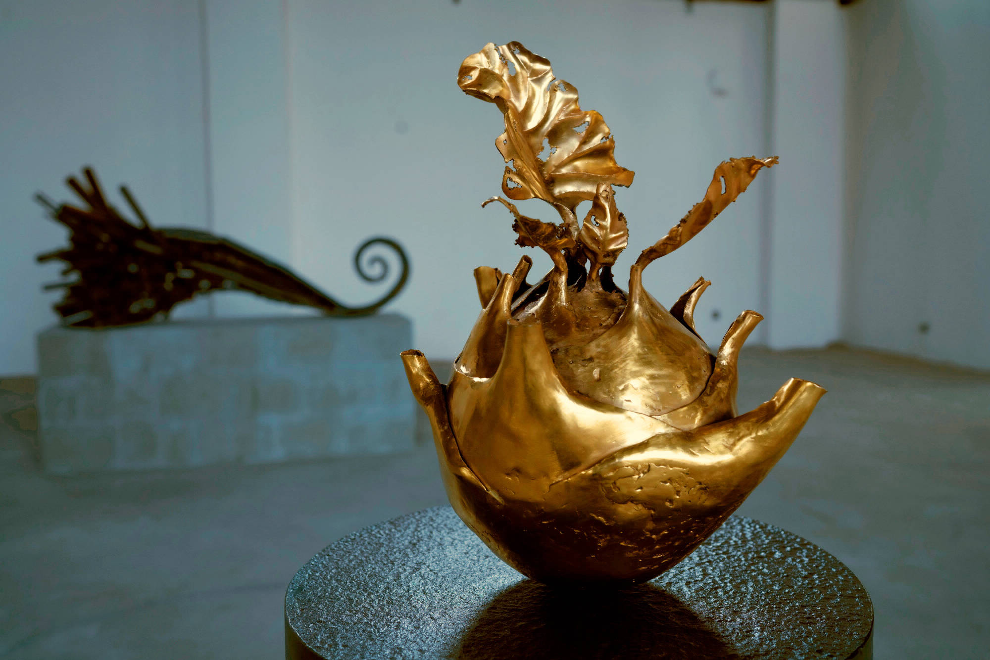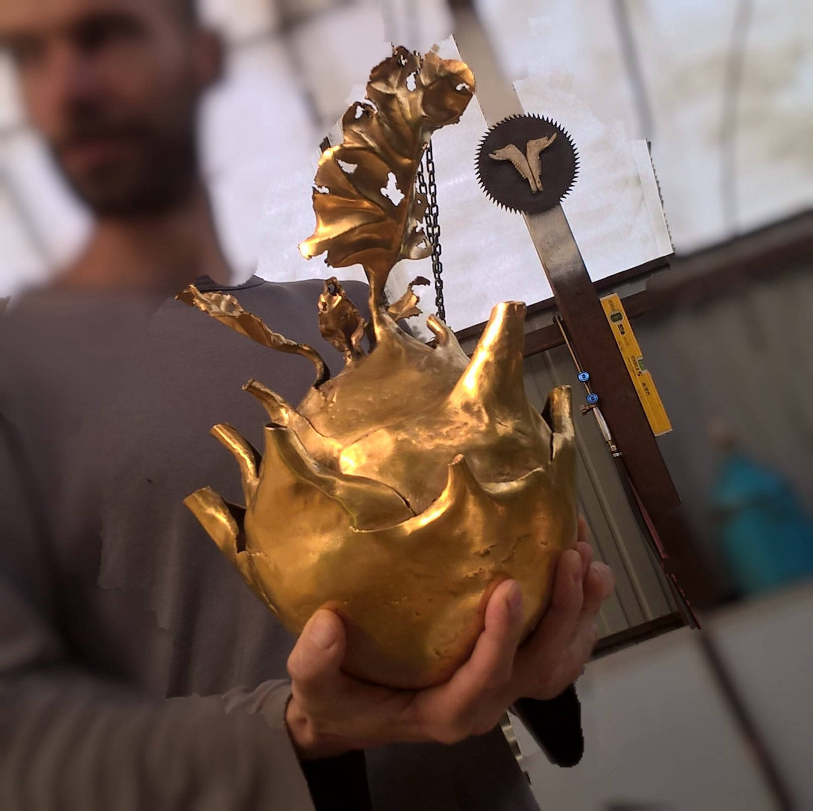 2016, нержавеющая сталь, золото, свинцовая дробь, 21/31/22 см.