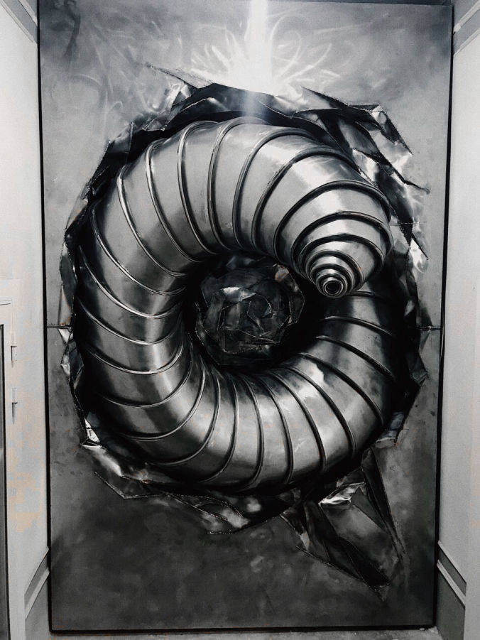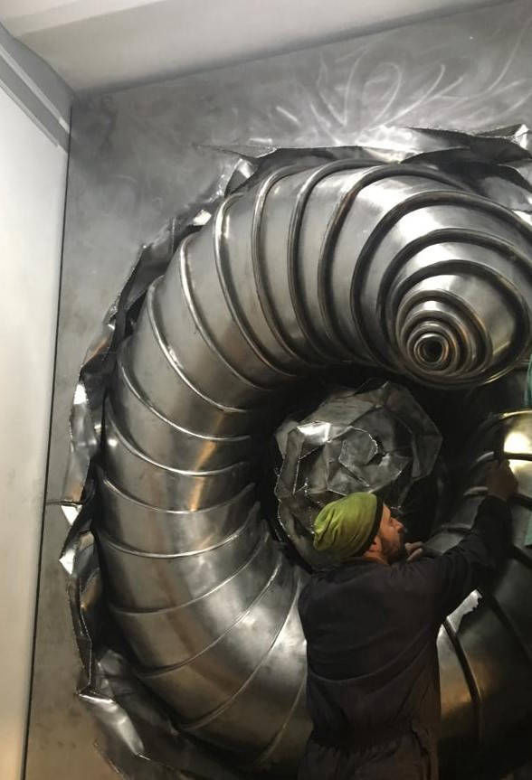 2018, high relief, steel, 400/250 cm. Jasnaja Poljana coworking space, SPb